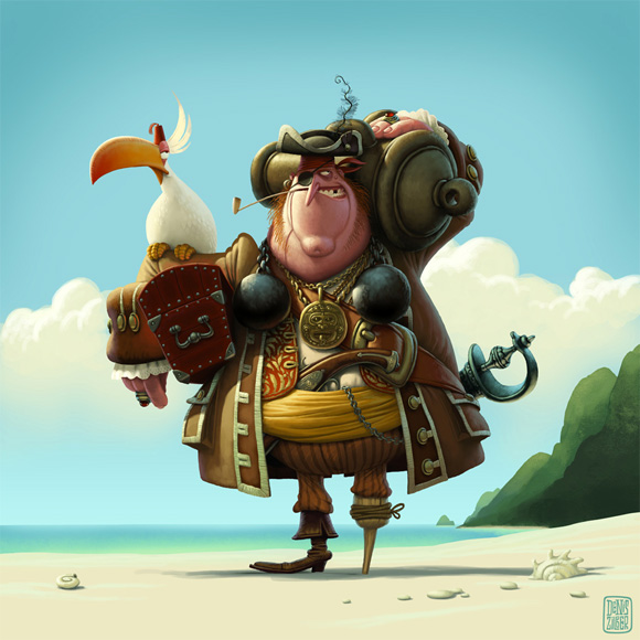 рисунок их тех, котоыре хочется рассматривать и рассматривать. каждая деталька со вкусом. меня больше всего расстрогал попугай))))) и медальончик в стиле майя))) бывалый такой Сильвер получился. дает рисуночек простор фантазии. что плохо - не прорисовано лицо. а можно было бы так разгуляться)))