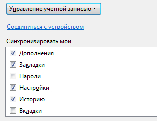 В FireFox все сделано сложнее. Сначала создаете аккаунт на каком-то базовом устройстве - например, на рабочем (домашнем) компьютере. Там выбираете, что и как синхронизировать. Это, в общем, делается несложно.
