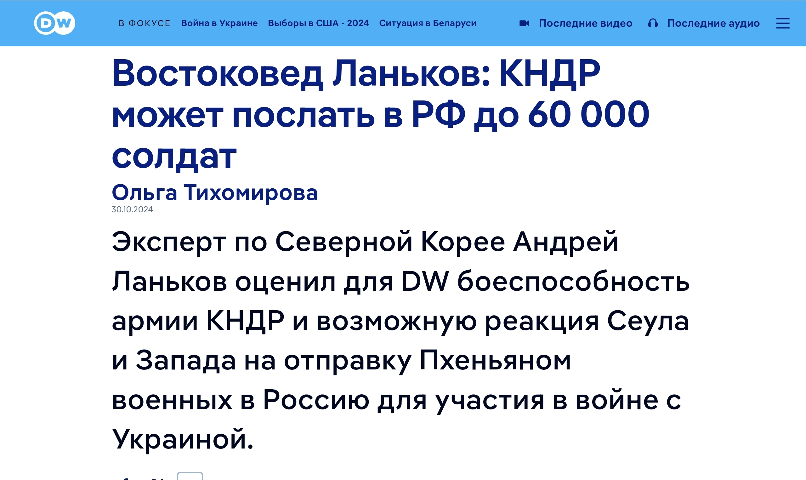 Ланьков: от КНДР Россия может получить от 12 тыс. до максимум 60 тыс. солдат. Больше крайне маловероятно, так как угрожает безопасности самой КНДР.