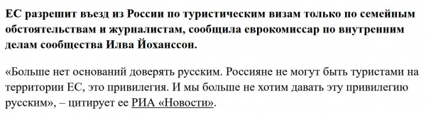 По российским СМИ разгоняется "новость" о том, что ЕС вообще не будет выдавать россиянам туристические визы.