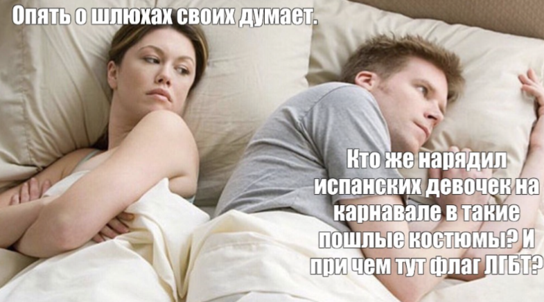 В Испании недавно прошли традиционные карнавалы, после чего в Сети завирусился вот такой ролик с карнавала в Торревьехе, где восьмилетние девочки прошли с флагами Испании и флагами ЛГБТ вот в таких костюмах из серии "мечта педофилов".