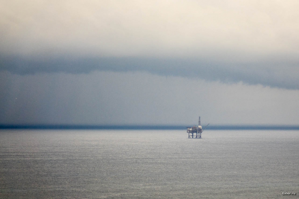 Справа вдалеке - какая-то платформа. Нефтяная, что ли?