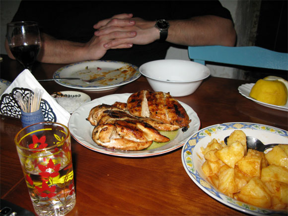 Вчера ездили в Ларнаку в ресторанчик, название которого по-русски звучит как "Хромой Николай". Ресторанчик расположен в здании бывшей мельницы, и там готовят обалденно вкусное мясо.