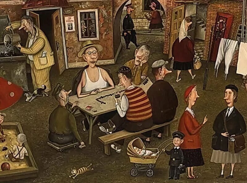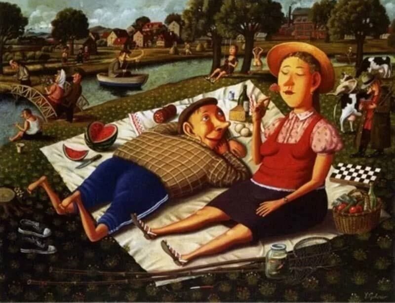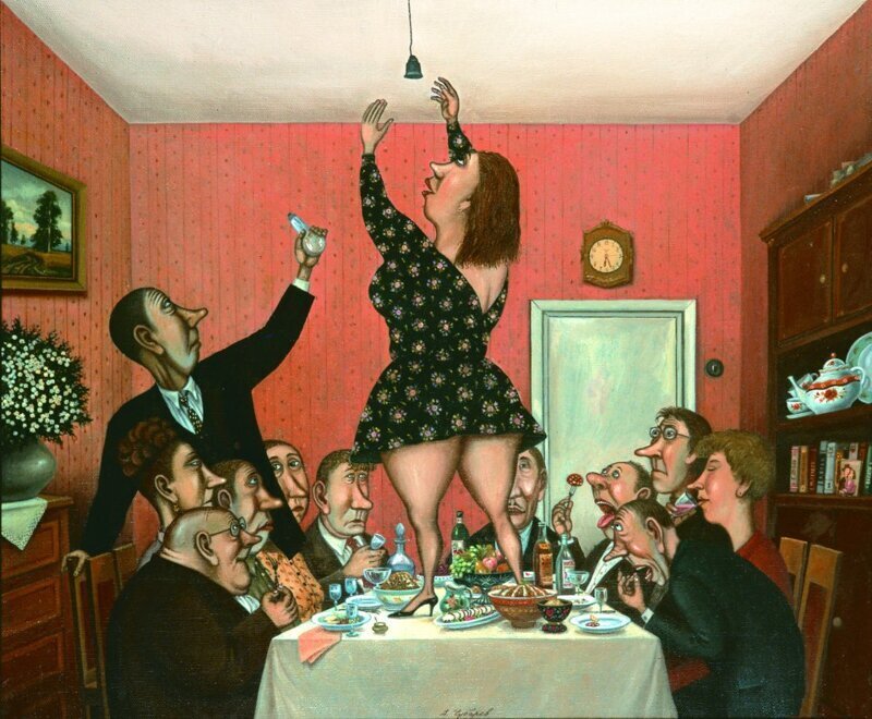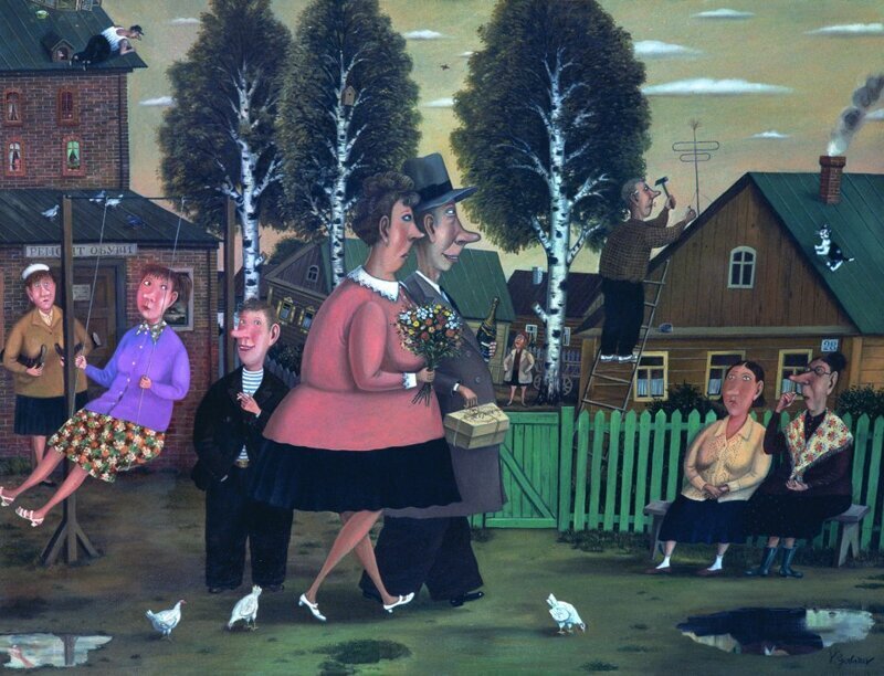 Там на заднем фоне, если внимательно рассмотреть, много интересного. Как, например, на картине "Свадьба" в левом верхнем углу. ))
