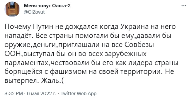 Мне тоже кажется что мобилизация приблизит конец, потому что мнение сразу изменится в пользу «против войны». Легко кричать все это, когда дома в тепле на унитазе сидишь.