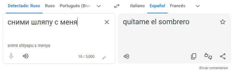 А вот "Кавказская пленница" - тут еще забавнее получилось, особенно японский и испанский: "Шляпу сними" - "Quítate el sombrero" 😁