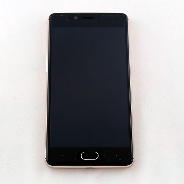 Смартфон выглядит простенько, но добротно: пластиковый корпус, покрашенный под металл, кнопка "ОК" совмещенная со сканером отпечатка, две сенсорных кнопки без маркировки.