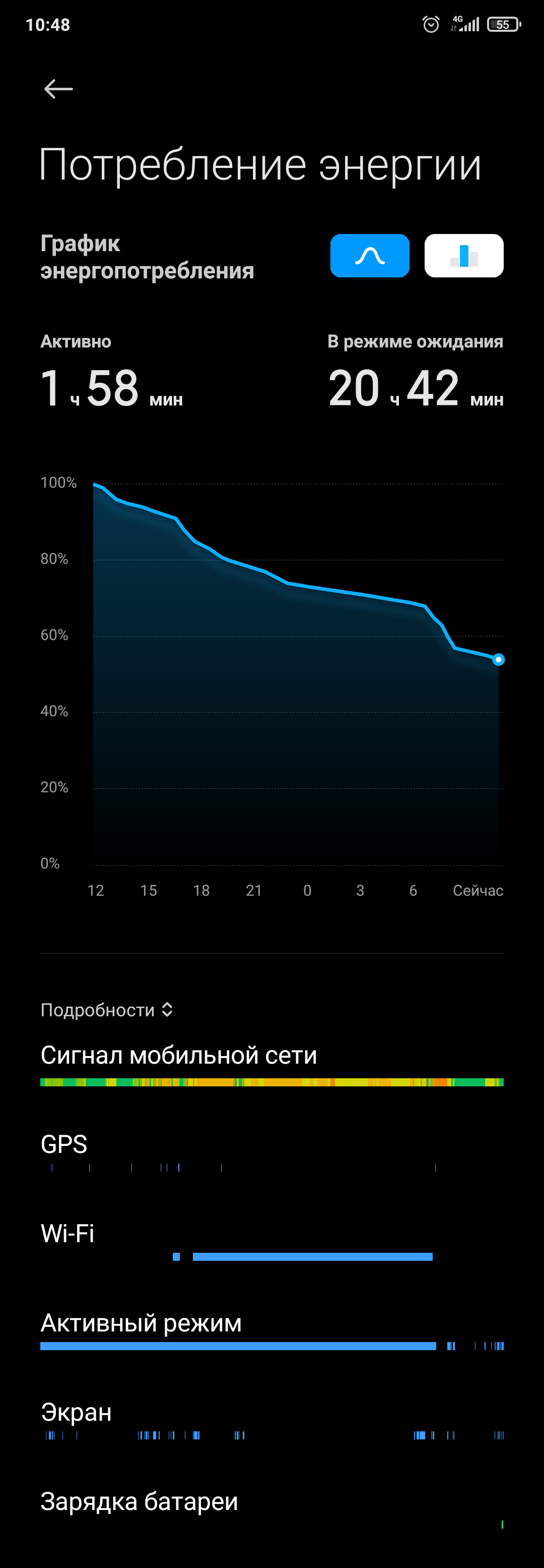 Кстати, посмотрите в настройках в в батарее- после обновления на MIUI 12 у многих смартфон перестал засыпать. Из-за этого скорость разряда еще больше увеличилась. Перезагрузка и выкл/вкл помогает, но буквально на пару часов, иногда на ночь.