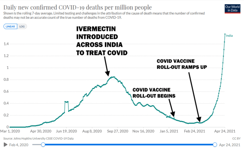 А вот вишенка -- график той самой страшной волны из Индии. Думаю, причина "третьей волны" в РФ имеет ту же природу.