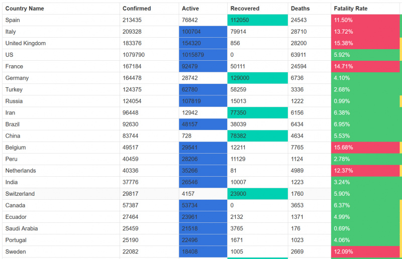 Чем больше проведенных тестов на ковид-19 - тем ниже смертность. И это основной фактор, влияющий на цифры в таблице.