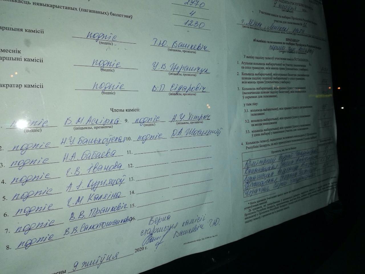 Есть опубликованные протоколы с минимум 20 участков минска, где у председателей комиссии совесть проснулась. Там видно что у Лукашенко максимум процентов 30 набирает, и это с учетом вбросов, то есть без вбросов процентов 20. Вот один из. (жаль только один файл можно загрузить). И этот клоун вроде уже заявил, что на этих участках будет ручной пересчет с ОМОНом. Причем там где совесть не проснулась, председатели под прикрытием ОМОНа пряча глаза уезжали, так как знали реальную картину. Ну и есть еще несколько участков где председатели нарисовали сколько надо, но отказались подписывать. В общем на кого этот цирк рассчитан непонятно. Сказал бы да меня никто не поддерживает, зато у меня есть ОМОН.