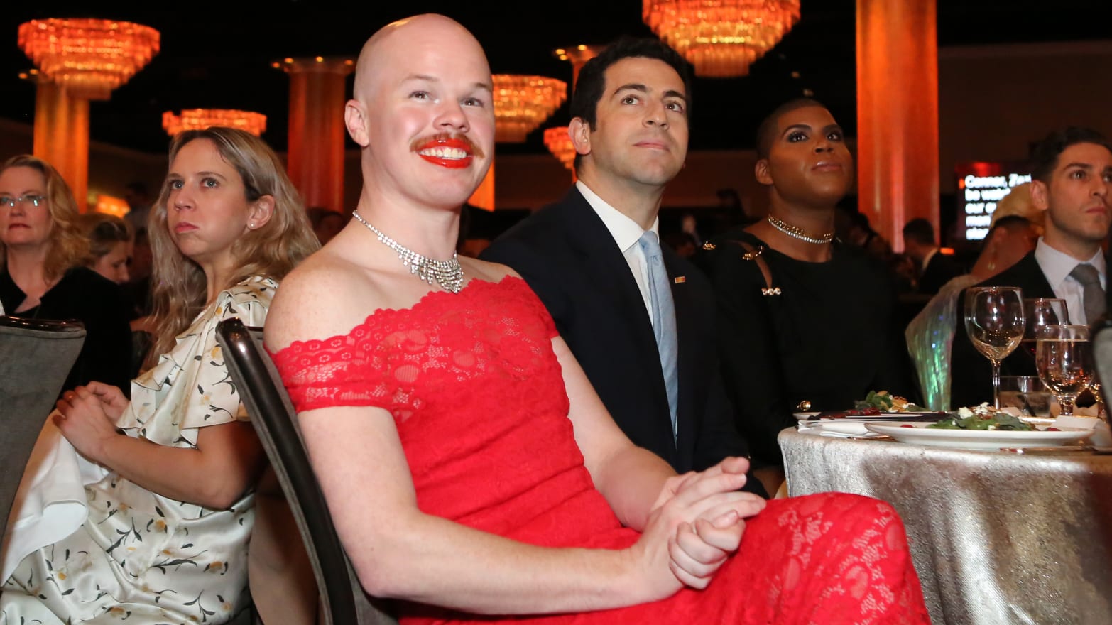 В нормальном обществе подобного фрика могут разве что вывести из зала за несоблюдение дресс-кода.