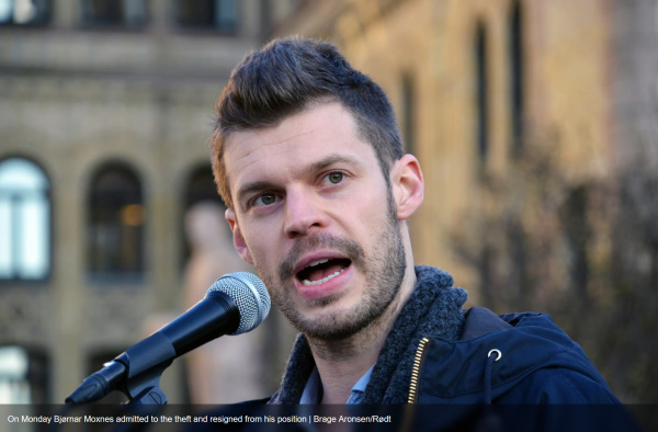 Мокснес, который 11 лет возглавляет Красную партию Норвегии, имеющую восемь мест в норвежском парламенте, 16 июня был заснят на камеру, когда он воровал солнцезащитные очки Hugo Boss в магазине беспошлинной торговли аэропорта Осло. После того как кадры кражи с камер наблюдения стали вирусными, в начале июля Мокснес сделал вид, что заболел.