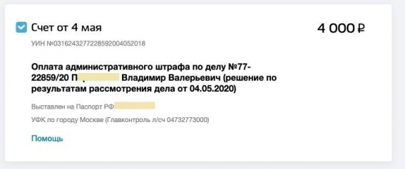 Москвичам, помещенным в домашний карантин, стали приходить постановления от Главного контрольного управления Москвы о привлечении к административной ответственности и штрафах за неправильное пользование приложением «Социальный мониторинг».