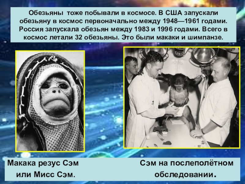 В космос летали тогда не только советские собаки и люди, но и обезьянки: