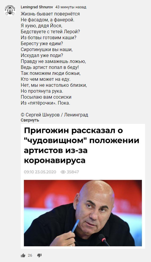 А что не так сказал Пригожин? Он не себя имел в виду, а всех работников отрасли. Или вы думаете условная балерина саратовского театра сейчас отлично живет? Шнур как обычно выдавил желчи не разобравшись