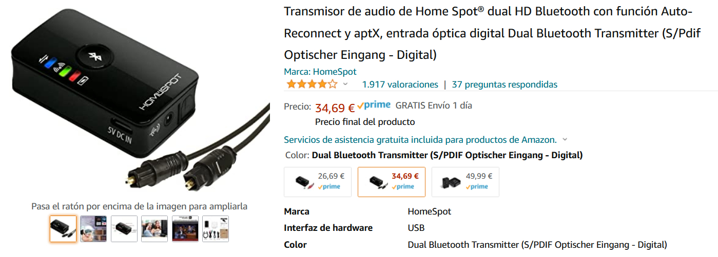 Нет, я, конечно, нашел на Амазоне первый попавшийся трансмиттер, чтобы под оптический выход и поддерживал пару наушников - сегодня привезут.