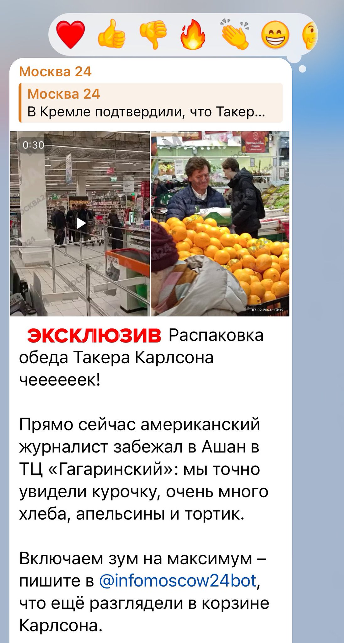 Так что да, спасибо Такеру Карлсону. Но не от меня, а от Путлера.