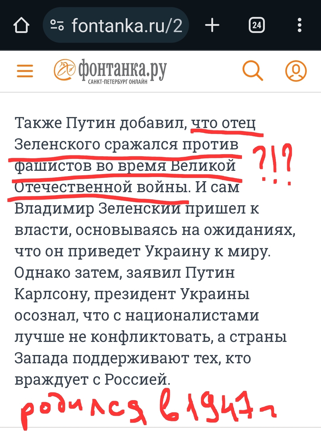 Впрочем, нам-то, конечно, совершенно наплевать на репутацию этого Карлсона, которая у него и так-то хорошо известна. Однако при всем при том мы должны сказать Карлсону большое спасибо. Потому что именно благодаря ему и этому интервью весь мир увидел, что собой на самом деле представляет тот самый "великий и ужасный Путин". Из интервью хорошо видно, что он просто совершенно поехавший крышей дедок, несущий несусветный бред.
