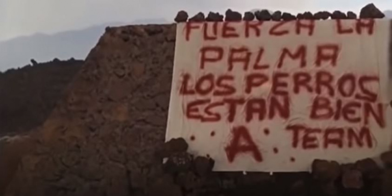Однако когда операция была подговлена и дроны с соответствующим оборудованием направились в зону, где находились собаки - они обнаружили следующее: собак в бассейне не было, рядом с бассейном стоял плакат: "Держись, Ла Пальма, собаки в порядке, команда А".