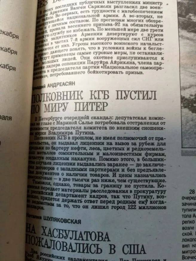 Суета вокруг поставок это 92 год, в статье идет все в настоящем времени, а путин еще только подполковник. Статья писалась намного позже того, что описывает.