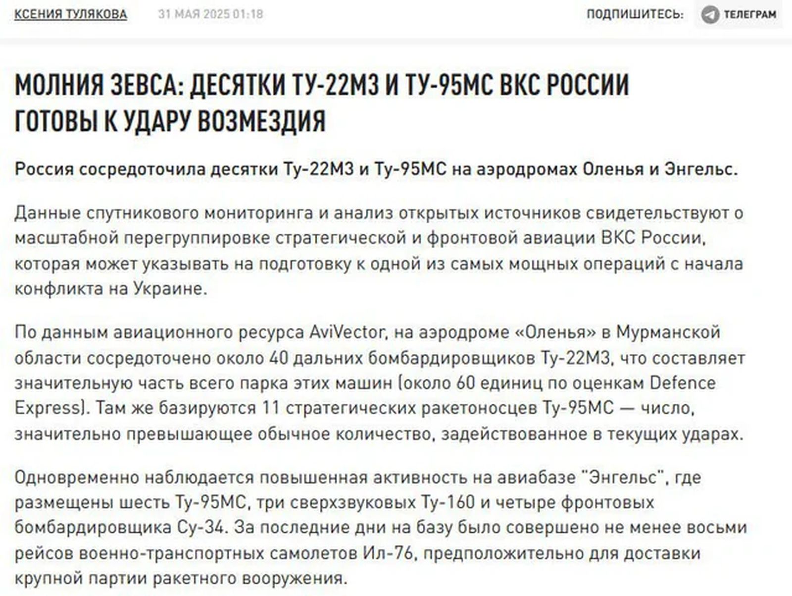 Самое смешное, российские журналисты и рассказали про скопление бомбардировщиков за пару дней до этой операции.