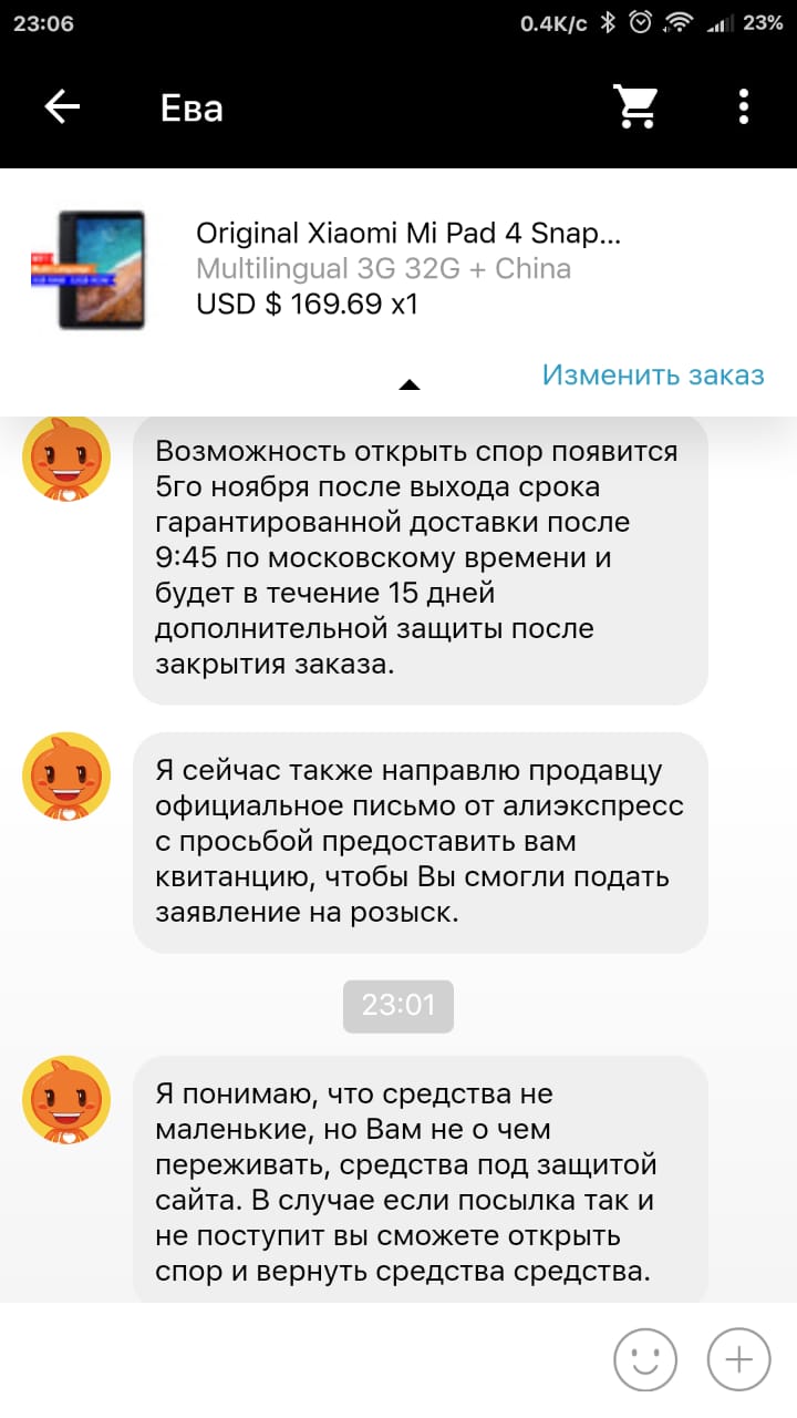 ниже прикладываю часть моей переписки в Чате с АлиЭкспрессом