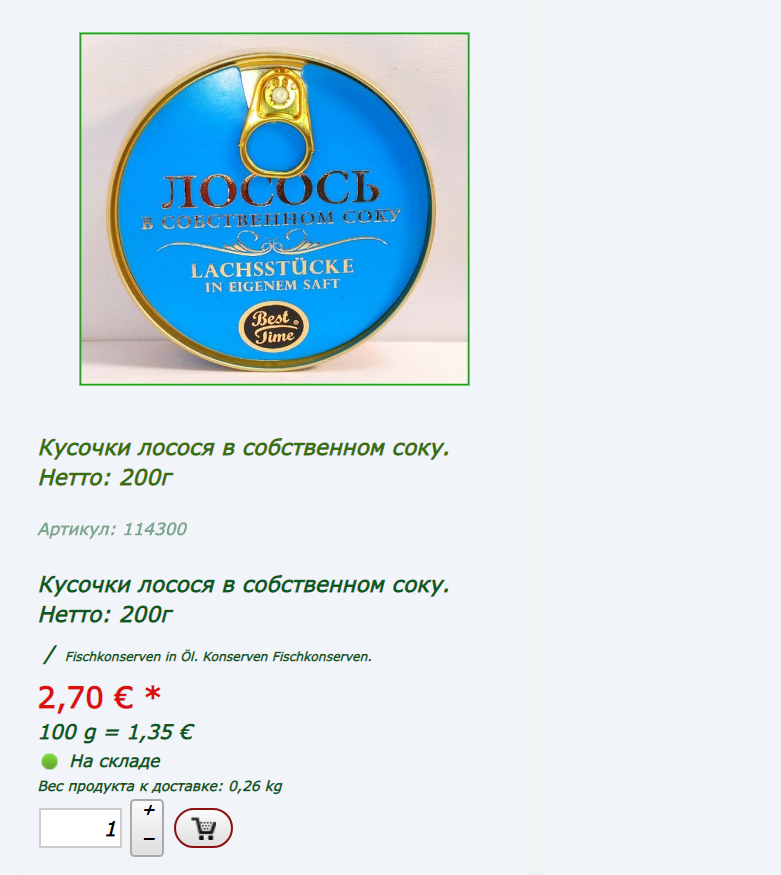 В Германии лосось в консервах присутствует в русских магазинах.