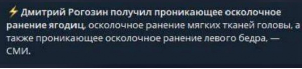 Срочная новость - Дмитрий Рогозин ранен в ДНР