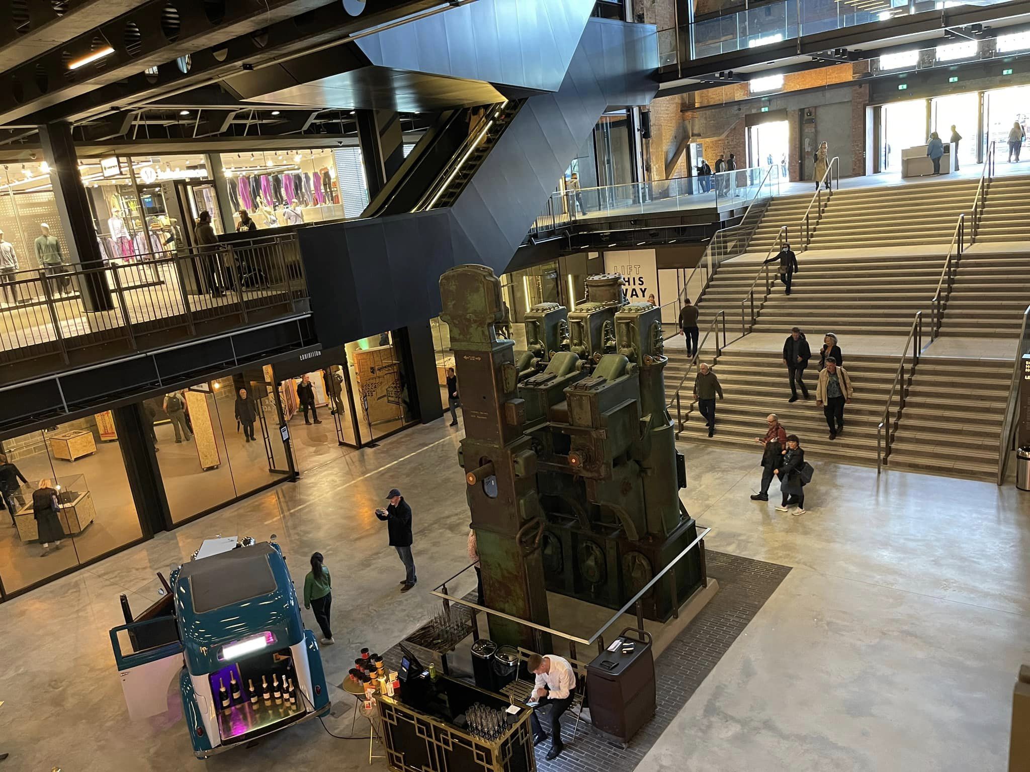 𝐵𝑎𝑡𝑒𝑟𝑠𝑒𝑎 𝑃𝑜𝑤𝑒𝑟 𝑆𝑡𝑎𝑡𝑖𝑜𝑛 работает всего две недели, есть еще много пустых помещений. Обещанный стеклянный лифт внутри заводской трубы пока не запустили, с него будет отличный вид на тумманный Альбион. А еще рядом стеклянно-модерновый арт-отель, офисы и квартиры в аренду.
