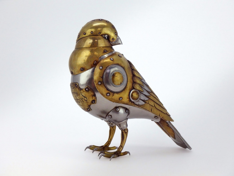 Игорь Верный (Igor Verny) делает из металла фигурки птиц, жуков, муравьев, роботов и так далее. Получается у него, на мой взгляд, просто здорово. Вот его Инстаграм, вот его Фейсбук.