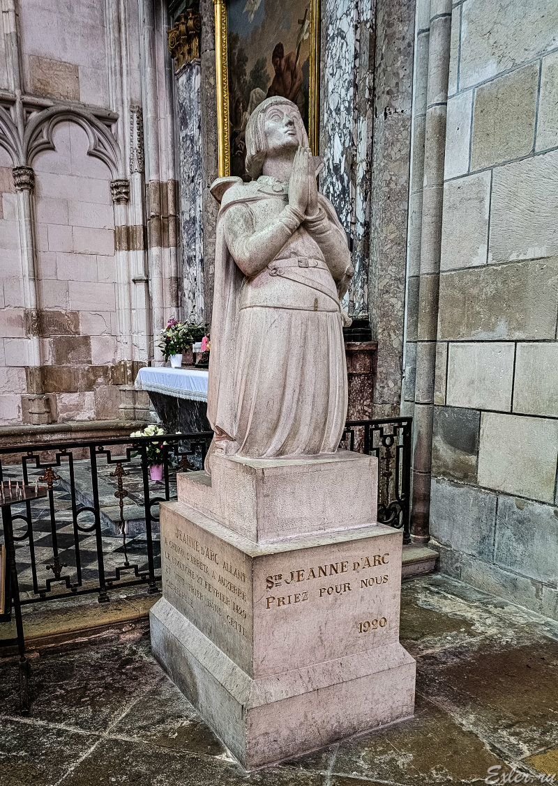 А еще в этой церкви как-то помолилась сама Жанна Д'Арк, о чем свидетельствует памятная табличка и эта скульптура. Ну, знаете, в России памятной табличкой отмечают все места, где В.И. Ленин выступал перед рабочими, парился в бане или ловил рыбу, так вот во Франции отмечают все места, где когда-то молилась Жанна Д'Арк. А она много где молилась, она была очень набожная, и ей самолично являлась Богородица.