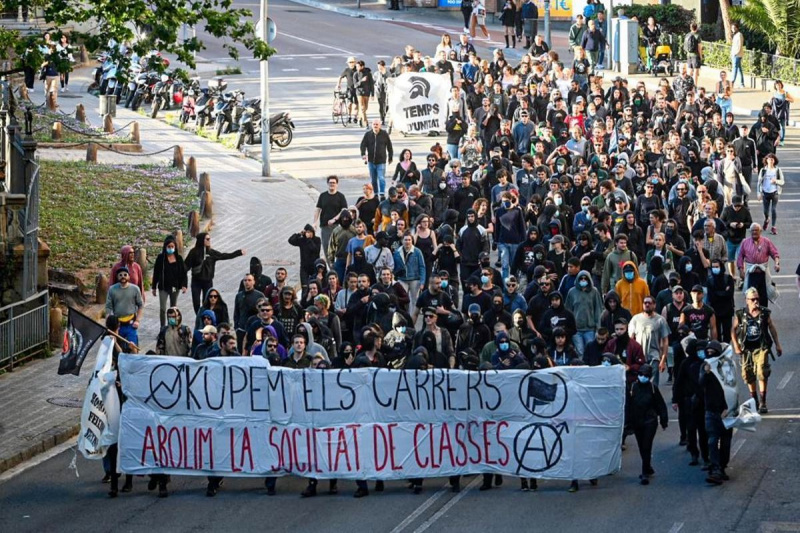 Усиленные наряды каталонской полиции - не менее 300 сотрудников - стянуты в район площади Бонанова в Барселоне (район Сан Жерваси), где этим вечером и ночью ожидаются манифестации, грозящие перерасти в беспорядки. Повод - попытка выселения группы самозахватчиков из заброшенных зданий, известных как “Куб” и “Руина”. Известно о двух манифестациях - одна из них созвана сторонниками групп, поселившихся в этих зданиях с 2016 и 2019 года. Среди них анархисты, анттикапиталисты и ультралевые элементы. Среди их лозунгов - “разрушение классового общества”.