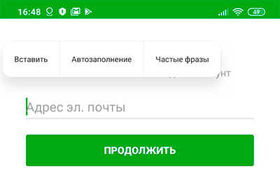 Но когда пытаешься вставить в поле пароля - он не выдает пункт "Вставить", только "Автозаполнение" и "Частые фразы". Слегка бесит, потому что вручную набирать длинные пароли как-то не прикольно.