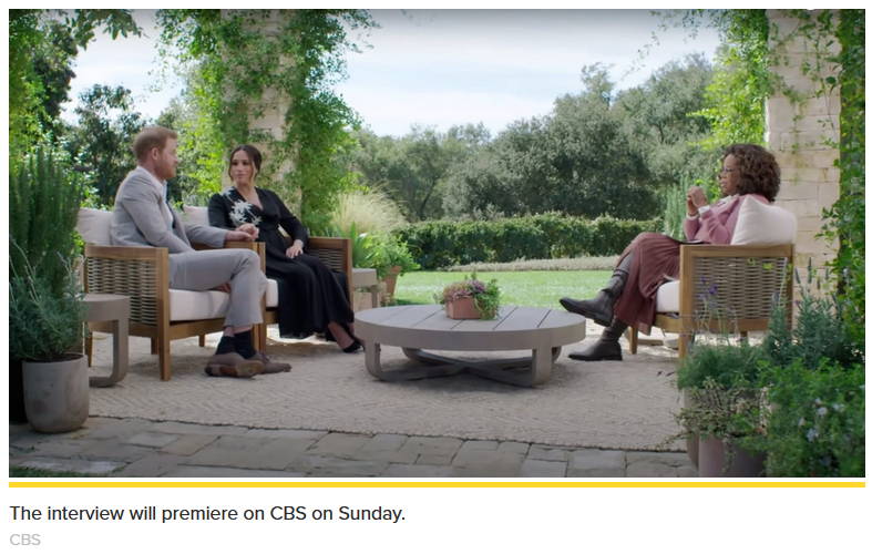 Сейчас очень активно будут обсуждать интервью Меган и Гарри в шоу Опры. NYT уже сравнил этот выпуск с ещё одним эпизодом сериала Корона.
