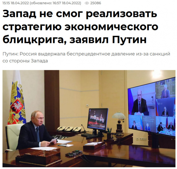 Путин уже преодолел беспрецедентное экономическое давление со стороны Запада, которое он своими же руками и вызвал. Уже все нормально, мужики, теперь заживем, сказал Путин.