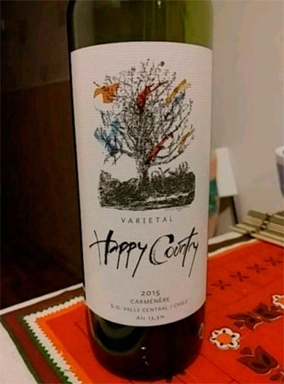 Во многих магазинах встречается вот такой чилийский карменер (сорт винограда) Happy Country Carmenère Varietal. (Раньше я его не видел.)
