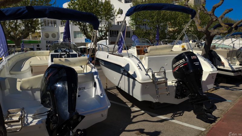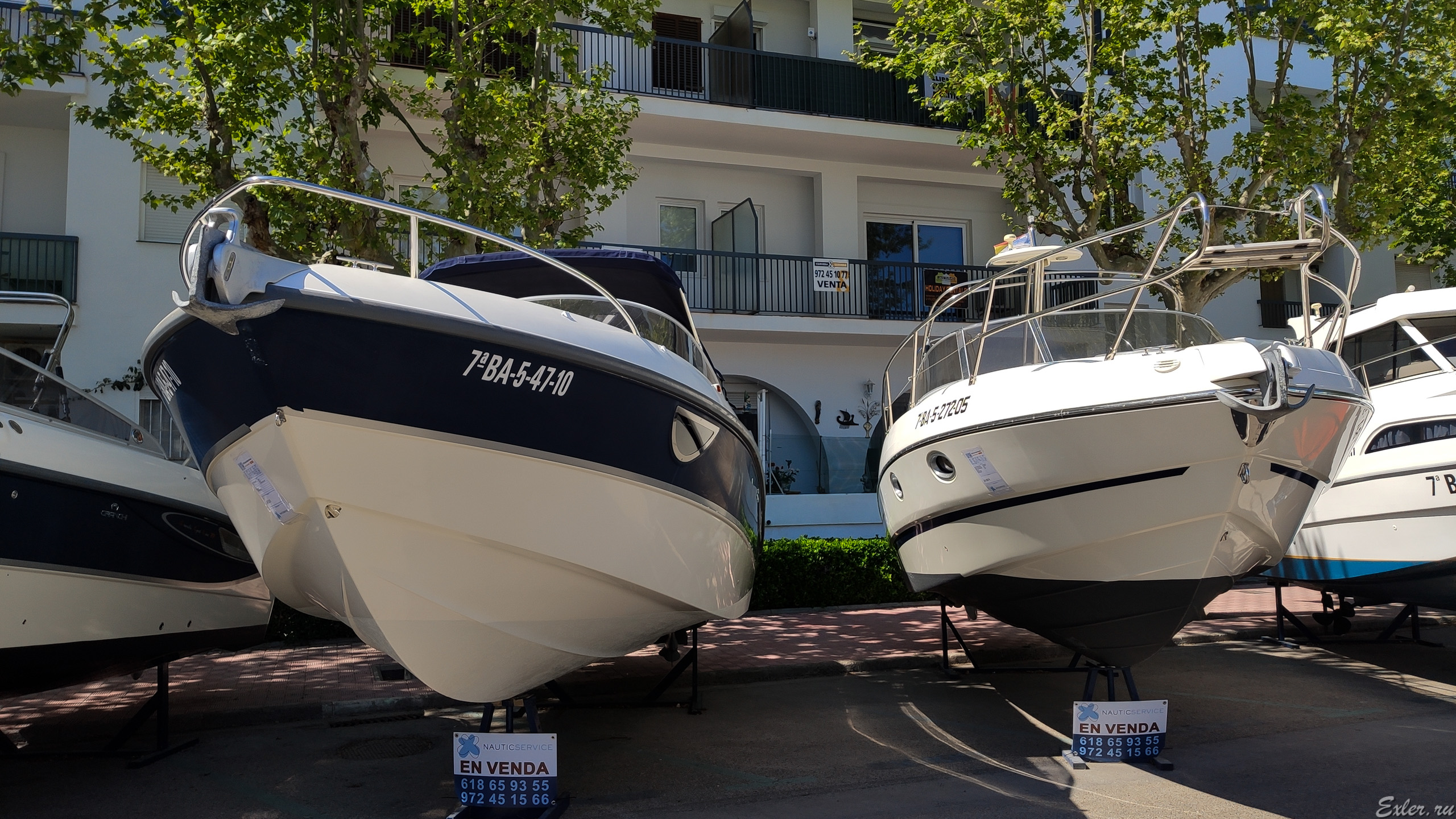Вчера был в Эмпуриабрава. Там тоже проходит субботний рыночек. Но не фермерский. На нем продают подержанные водные мотоциклы, лодки, катера и яхты. Иногда попадаются и новые - на них висит наклейка "Нулевой пробег". Можно походить и прицениться.