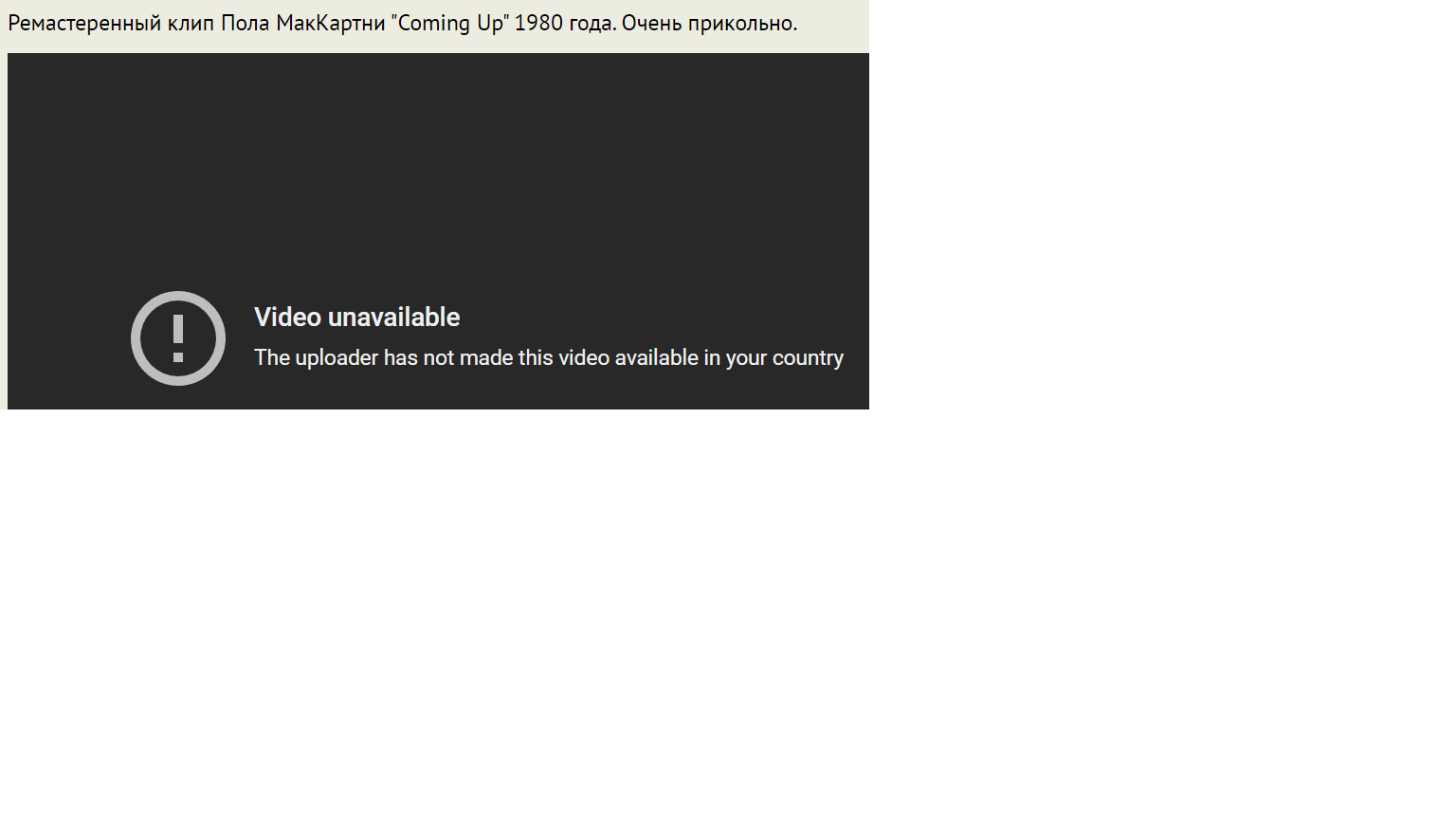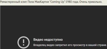 Во, дожили 😒 Уже и клипы из РФ посмотреть нельзя. Да, про VPN я в курсе и он у меня есть, но такого сообщения от ютуба я еще не видел. Просто VPN с импортным IP включаю, когда надо строго куда-то зайти, куда не пускают из РФ. Обычно для открытия сайта exler.ru или rutorrent. org хватает плагина в браузере 😄 Цели СВО считаю достигнутыми -- РФ почти как Северная Корея стала, мля 😒