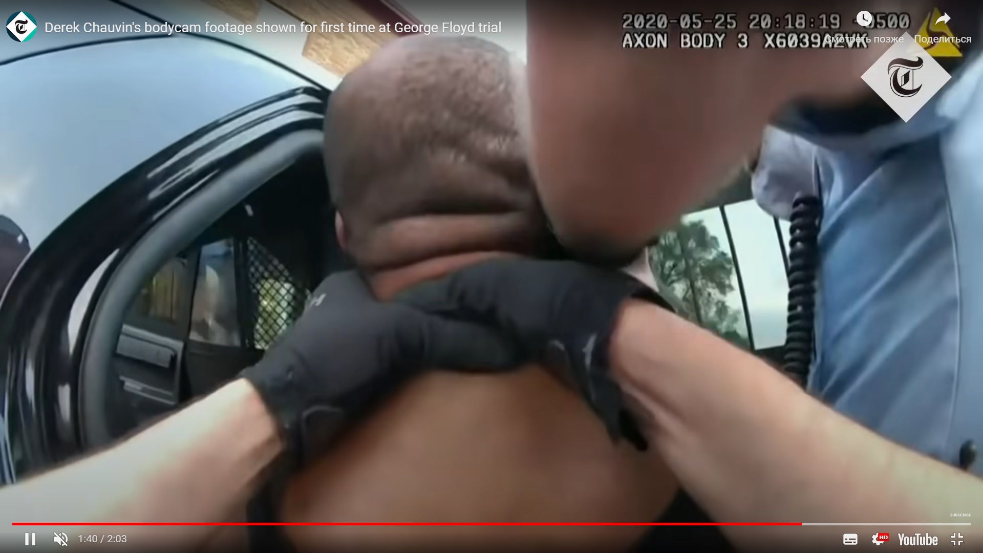 Есть видео допроса свидетеля, где он очень подробно объясняет, как задушили Флойда. Для этого даже на шею вставать не обязательно.