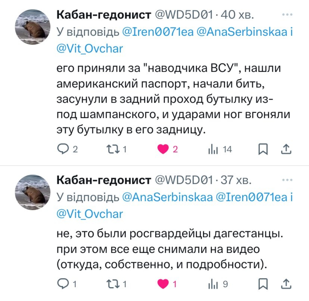 После этого происшествия всякая z-шелупонь, за которой внимательно следит Иван Филиппов, робко-робко возмущалась тем, что легендарный американ был настолько мерзко похищен и убит типа своими же, но даже тот же Ходаковский, под началом которого Бентли-Жигули служил в Донецке, сначала предельно аккуратно написал о том, что хорошо бы найти тех, кто вообще убил бравого реднека, цитирую: