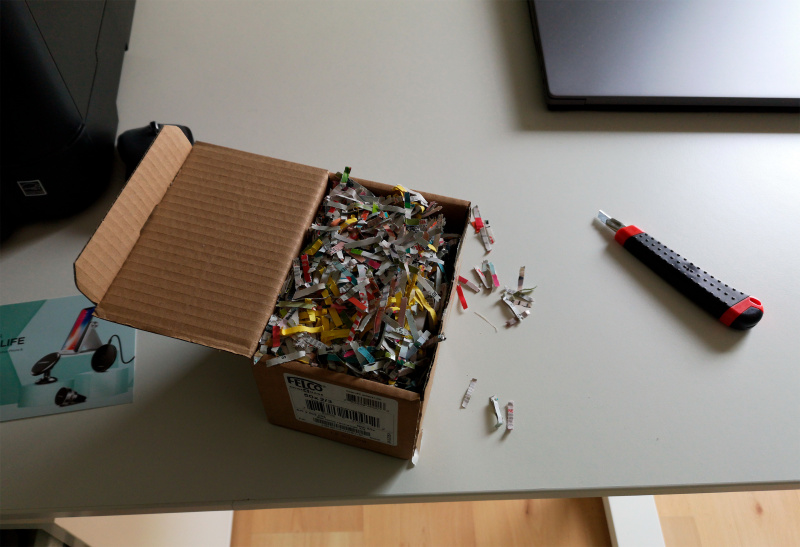 Если вы считаете, что у клиента вашего интернет-магазина жизнь скучна и в ней нет никаких развлечений, то возьмите на себя нелегкий труд развлечения клиента! Упакуйте заказанную им штуку в большую коробку, а туда насыпьте содержимое шредера из вашей конторы. Это решит сразу две задачи: послужит буфером во время перевозки, но самое главное - изрядно развлечет клиента, потому что он будет вынужден сначала собирать эти конфетти со стола, а затем еще и подметать комнату, вслух выражая огромные благодарности вам за заботу.