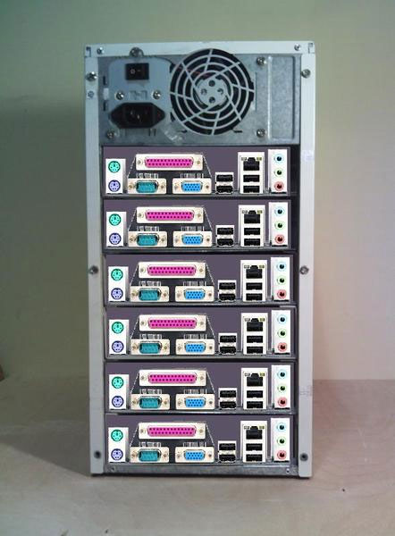 Также не надо быть спецом, чтобы понять полнейшую бредовость и неработоспособность подобного монстра, даже если бы кто-то и ухитрился воткнуть шесть мамашек в один корпус. Во-первых, для их питания не хватит БП. Во-вторых, процессоры не будут нормально охлаждаться. В-третьих, это все толком невозможно будет использовать как кластер. В-четвертых, подобный идиотизм вообще не имеет никакого смысла - по очень многим причинам. Впрочем, это, скорее, во-первых.