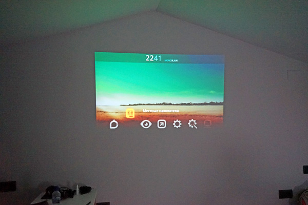 Ну что, проектор как проектор - действительно проецирует. На свету, конечно, почти ничего не видно, но подобная штука наблюдается и у больших проекторов. А в хорошо затемненном помещении уже вполне видно.