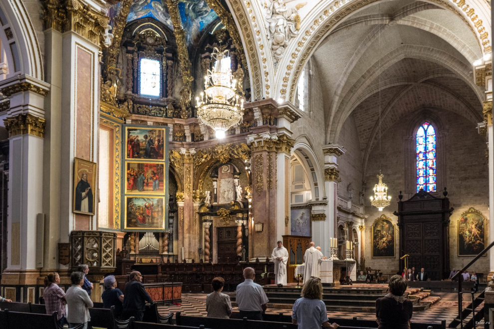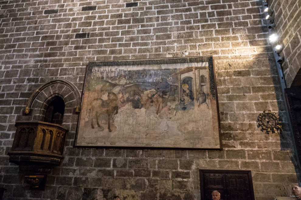 Итак, Кафедральный собор святой Марии Валенсии (Catedral de Santa María de Valencia). Первоначально, как это часто бывает в данных краях, здесь был римский храм богини плодородия. Потом пришли арабы и сразу все разрушили, построив на этом месте мечеть. Когда Арагонские короли вышибли арабов из этих краев, на меcте разрушенной мечети заложили собор - это было в 1262 году. Строили собор до 1356 года, причем и впоследствии его много раз расширяли и перестраивали. (Да и сейчас его нередко реставрируют, поэтому в прошлое свое посещение Валенсии мы собор посетить так и не смогли.)