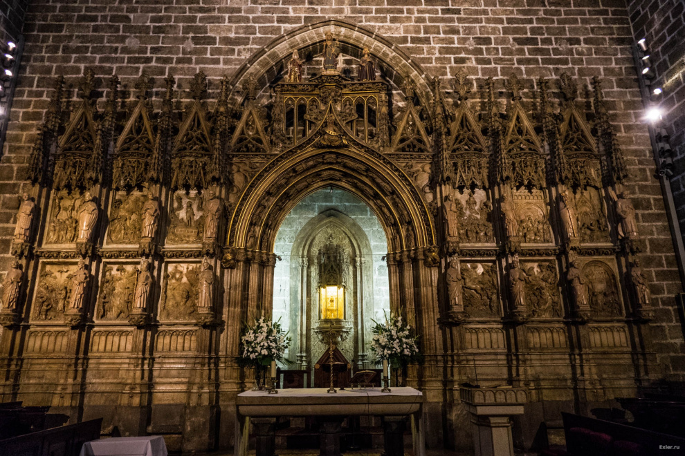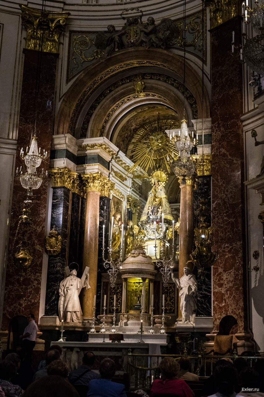 Внутри алтаря сверху алебастровая скульптура Богоматери Вирхен-де-ла-Кадира (Virgen de la Cadira).