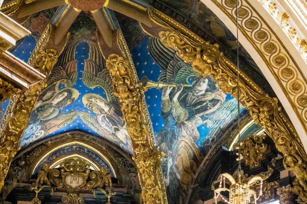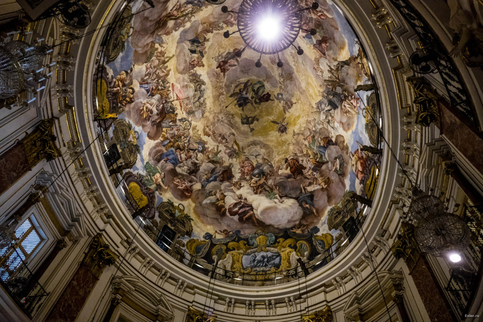 Вот эти ренессансные фрески с музицирующими ангелами случайно были обнаружены только в 2004 году - под барочной лепниной. Удивительно, как хорошо они сохранились.