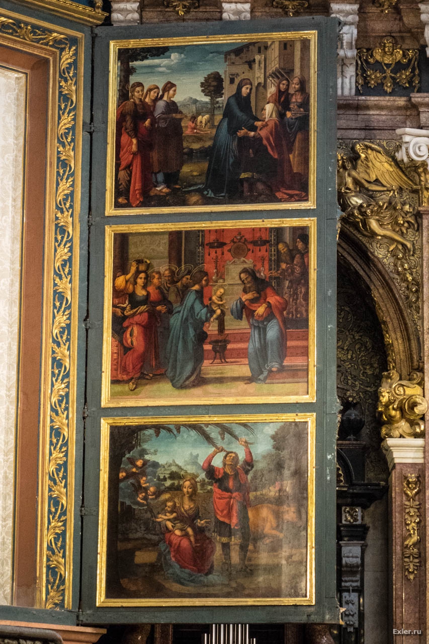 Створки алтаря, расписанные художниками Фернандо де ла Альмединой и Фернандо де лос Льяносом. Всего там 12 створок, но они обычно закрыты, поэтому видны только 6 внешних створок.