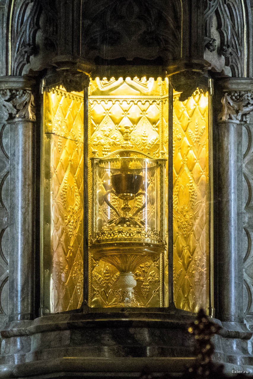 Так вот, в-третьих, никаким Ватиканом не было признано, что эта чаша, хранящаяся в Кафедральном соборе, является Святым Граалем. Более того, Ватикан даже не признавал, что из этой чаши МОГ пить Иисус, причем это еще и МОГЛО произойти во время тайной вечери. Единственное, что себе позволил Ватикан, так это то, что оба Папы Римских - Иоанн Павел II и Бенедикт XVI - во время служб в этом соборе использовали данную чашу - в знак признания ее древнего происхождения. Вот и все. Поэтому заявления о том, что Ватикан официально признал эту реликвию Святым Граалем - вранье.