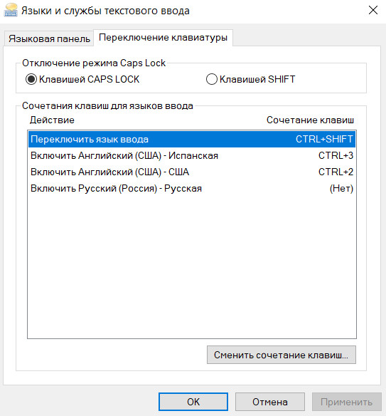 Заметил, что у Windows 10 после очередного обновления проявился странный глюк. Во-первых, он периодически теряет настройки сочетаний клавиш языковой панели. Причем не основные настройки, а дополнительные - включение конкретных языков. У меня в английском языке установлены две раскладки - английская и испанская (это намного удобнее, чем держать три языка, один из которых нужен не постоянно), так что на включение английского и испанского есть специальные сочетания клавиш.